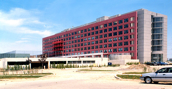 and day-care. With its colourful facade of pre-cast concrete, the structure was enclosed and