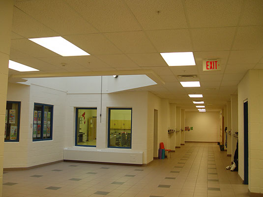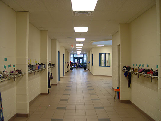 The addition to the Plowman’s Park PS utilized an innovative strategy to wrap the addition around the existing gymnasium resulting in a core type plan, similar to new prototypical schools presently being built throughout the Board. The addition includes 2 Kindergartens, 9 Classrooms, 3 Seminar Rooms, an Orthopaedic Room and renovations to the existing Library, Health Room, and Barrier-Free entrances and a new Kiss + Ride facility.