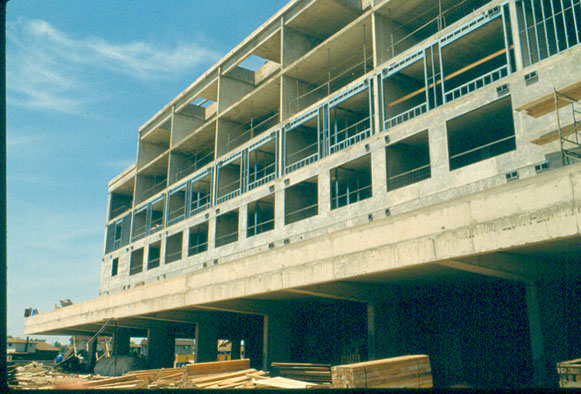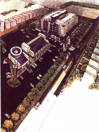 Three building mixed-use complex, 2 single storey 80 unit residential condominium with atrium and 90 space underground parking.