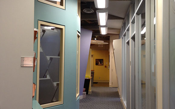 WK Lim Architect Inc. was retained to design offices for a young, dynamic, multi-disciplinary law firm (see Offices of Davies Howe Partners - 1998) whose success has caused it to outgrow its present location. We have again been engaged to design offices which would reflect its progressive and innovative character. The strong geometric central core of conference room, meeting room and library is intersected by a passage which connects the reception area to the lounge.