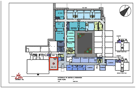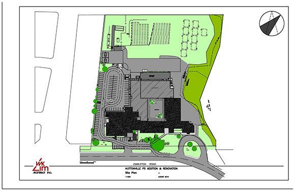 One of the oldest rural schools in the Peel District School Board finds itself amidst an expanding Plan of Subdivision anticipating hundreds of families augmenting its catchment area. Site Plan Approval includes the co-ordination of the Huttonville Community Centre which shares a joint use gymnasium with the school, widening of Embleton Road, acquisition of a western land parcel, phasing and switchover for a new transformer, gas meter/gas line, domestic and fire lines, approval by the Credit Valley Conservation Authority and Heritage Brampton, and subject of an archaeological report to determine whether native artifacts are likely to be covered by time in the area. A major addition includes 5 kindergartens, Art, STAC, and SMT classrooms, four regular classrooms, special education, orthopedic room, and instrumental and vocal classrooms organized around a central courtyard which consolidates an inefficient original school plan which has grown over time from the original 1938 heritage school. Substantial renovations to the existing school include a new administration office, washrooms, entrance lobby, community rooms, and alignment of existing corridors to clarify an overly complicated circulation system. The workscope of this project is very similar to the King City Branch Library in the renovation of the existing lobby and administrative office for accessibility and AODA compliance, new washrooms and barrier-free facilities including stage lift and LULA elevator serving the Heritage School, and general upgrades and interior finish rejuvenation to better serve the community.