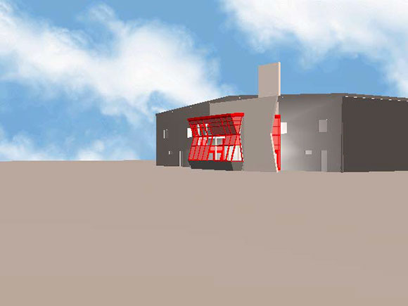 The addition at a functional level provides additional space for a generous double height entrance vestibule to the building with oversized doors to the north and south parking areas, relieving the existing constrained double doors and narrow entrance corridor. It also provides a necessary intermediate conditioned space between the outdoors and the humidity regulated arena, with a public vestibule visible from the street for waiting for friends or a ride. From a design perspective, the envelope of the entrance addition is a facetted glazed curtain wall with sloping panes of insulating glass and opaque insulated panels. The angled glass planes of the exterior walls are configured in a crystaline form, intended to anticpate the significance of ice in this building which plays such a vital role to the community. Its transparency allows the facade of the existing building to show through, maintaining the community's fond memories of this special place that has given so many families generations of enjoyment, while marking a revitalization, renewal and significance to the Milton Memorial Arena.