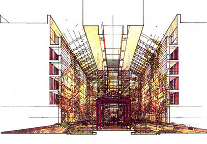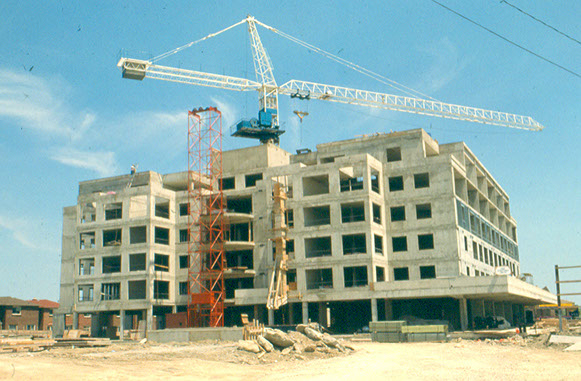 Three building mixed-use complex, 2 single storey 80 unit residential condominium with atrium and 90 space underground parking.